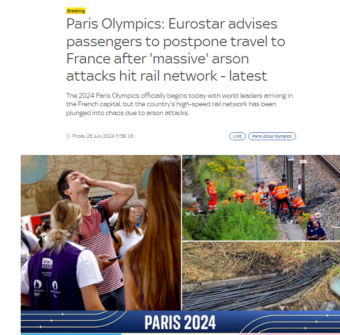 Home Breaking News Paris Olympics Eurostar advises passengers to postpone travel to France “massive” arson...