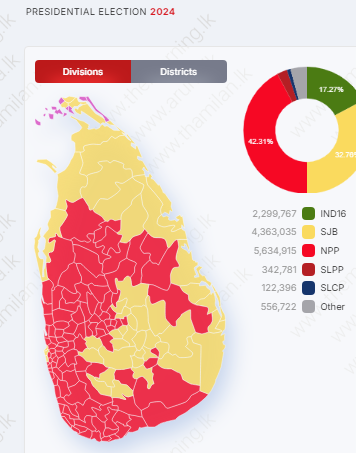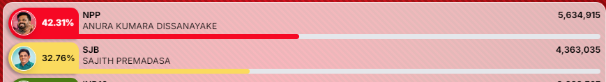 මෙහි ප්‍රති පලය කෙසේ වෙතත් වැඩි චන්ද ගනනක් ලබාගෙන ඇති ජාතික ජන බලවේගයේ ජනාධිපති අපේක්ෂක අනුර කුමාර දිසානායක 202 4 දිවයිනේ නව ජනාධිපතිවරයාලෙස පත් කෙරෙනු ඇත.