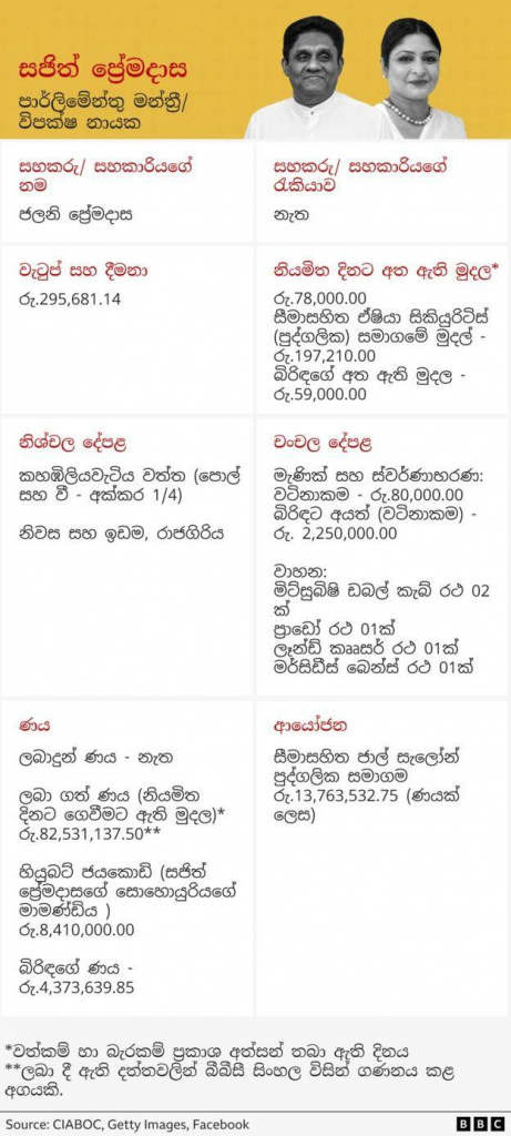 මේ, බීබීසී සිංහල විසින් ජනාධිපතිවරණයේ ප්රමුඛ අපේක්ෂකයන් සිවුදෙනෙකුගේ වත්කම් සහ බැරකම් ප්රකාශ පිළිබඳ ප්රධාන කොටස් 06ක් යටතේ සිදු කරනු ලැබූ විශ්ලේෂණයකි.