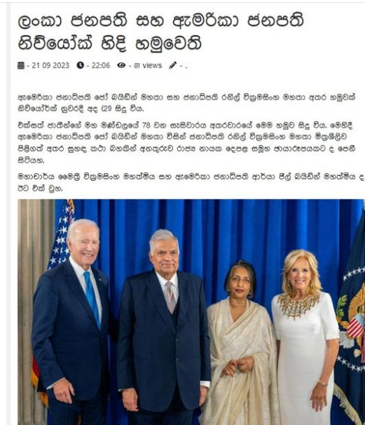 ලංකා ජනපති සහ ඇමෙරිකන් ජනපති ඇමෙරිකාවේදී හමුවෙති