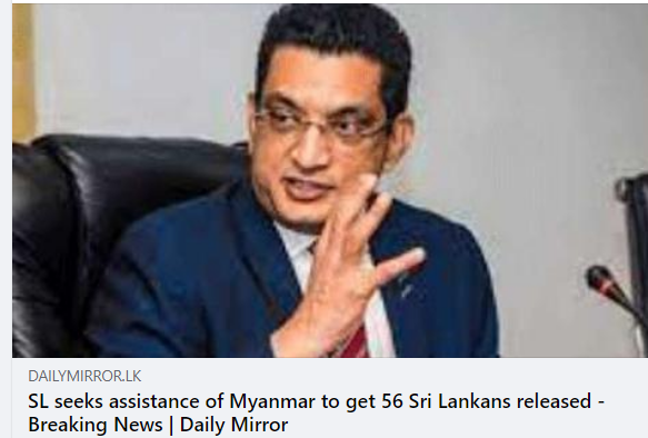 oreign Minister Ali Sabry has sought the assistance and urgent intervention of the Government of Myanmar to get the 56 Sri Lankans who are being illegally held in Myanmar released, the Ministry of Foreign Affairs said.