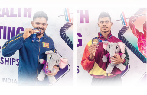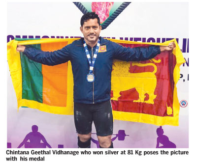 The promising weight lifter from Polonnaruwa won gold at 73 Kg category ( snatch 110kg,clean and jerk 145) total 255 kg to win junior gold medal while two experienced senior players Chintana Geethal Vidhanage won silver medal at 81 kg ( snatch 128kg,clean and jerk 162kg) total 290 kg and Commonwealth Games silver medalist Indika Dissanayake of Sri Lanka Navy once again performed well to clinch bronze medal at 73kg (snatch 140kg,clean and jerk 155kg) total 285 kg .in fact this was sixth commonwealth championship medal of Indika Dissanayake.