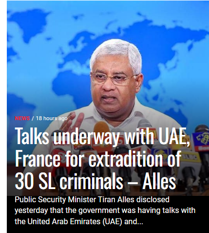 Talks underway with UAE, France for extradition of 30 SL criminals – Alles