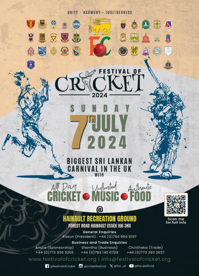The Festival of Cricket Promotional Evening 2024 at the Sri Lankan High Commission in the UK was held prior to the big event on the 7th of July, 2024. All the sponsors and the organizing committee attended the grand launching event.