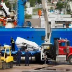 Metal wreckage from the Titan sub was unloaded from the Horizon Arctic ship in St John’s, Canada, on Wednesday.