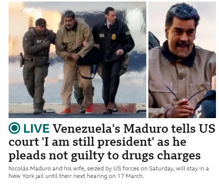 Venezuela’s Nicolás Maduro says “I am still president” as he pleads not guilty to drug trafficking and other charges in his first appearance at a New York court