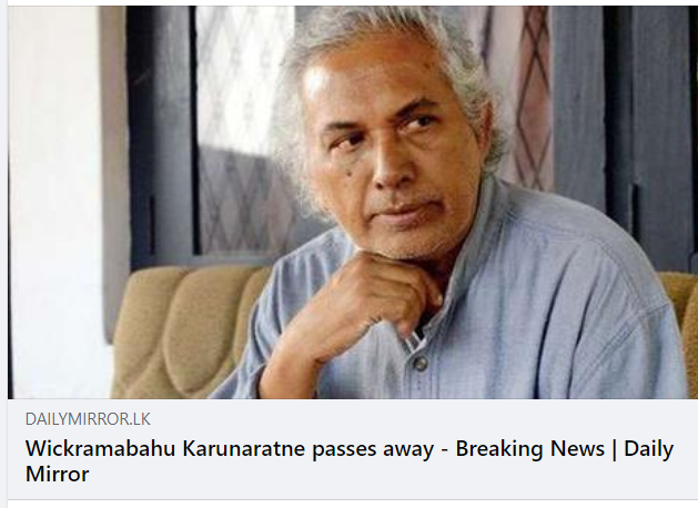 Colombo, July 25 (Daily Mirror) – New Sama Samaja Party leader Dr. Wickramabahu Karunaratne has passed away at the age of 81.